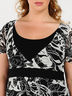 Детали: широкий округлый вырез; короткий рукав; втачной пояс; застегивается на молнию сбоку; оригинальный принт