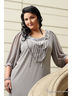 Нежное платье слегка расклешенного силуэта. Округлый вырез горловины. Укороченные рукава 3/4 на манжетах.