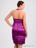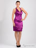 Платье с бретелью петлей и глубоким вырезом декольте. Модель приталенного покроя декорирована складками.