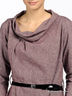 Платье оригинальной формы, с широким воротом-хомутом и тонким ламинированным поясом, ткань меланж.