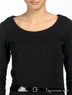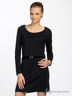 Платье-футляр из плотного трикотажа с декоративным лакированным поясом.