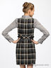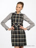 Клетчатое платье-футляр с коротким рукавом и декоративным поясом.