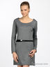 Платье-футляр из плотного трикотажа с декоративным лакированным поясом.