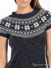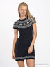 Теплые вязанные вещи с этническими орнаментами снова в моде! Уютное приталенное платье из приятного на ощупь материала. Круглая горловина. Заниженные проймы. Классический скандинавский орнамент белого цвета придает платью особое очарование.