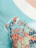 Платье с короткими рукавами и v-образным вырезом горловины. Изделие свободного кроя подчеркивает достоинства фигуры. Модель выполнена из качественной, принтованной ткани привлекательной расцветки. Отличный вариант на каждый день. Спереди изделие декорировано принтом.