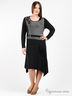 Стильное женское платье расклешенное к низу, выполнено из приятного на ощупь материала. Изделие с округлым вырезом горловины и длинными рукавами. Спереди расположен открытый карман. Модель декорирована аппликациями и нашивками.