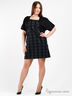 Стильное женское платье выполнено из приятного на ощупь материала. Вырез горловины - "каре". Изделие с короткими рукавами, полочка изделия декорирована пуговицами.