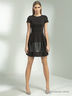 Платье с короткими рукавами и округлым вырезом горловины. Модель приталенного кроя подчеркивает достоинства фигуры. На юбке имеется вставка из контрастного по фактуре материала. Отличный вариант на каждый день.