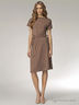 Платье с короткими рукавами и округлым вырезом горловины. Модель с юбкой свободного кроя, талия дополнена поясом. Отличный вариант на каждый день.