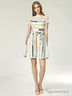Платье с короткими рукавами и округлым вырезом горловины. Изделие приталенного кроя имеет юбку свободного кроя. Талия подчеркнута поясом. Модель имеет вставку из контрастной по фактуре ткани. Отличный вариант для создания модного, повседневного образа.
