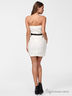 Короткое трикотажное платье с открытой зоной декольте. Модель выполнена из качественной ткани универсальной расцветки. Изделие дополнено поясом контрастного цвета. Отличный вариант для создания вечернего образа.