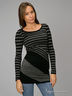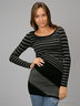 Трикотажное платье с длинными рукавами, с круглым вырезом. Декорировано принтом из ассиметрично расположенных полос различной ширины.