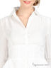 Детали: отложной воротник-стойка, регулируемые рукава 7/8 с хлястиком на пуговице, застегивается на пуговицы, по бокам 2 втачных кармана, талия на втачном поясе, сзади присборенна на резинки