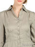 Детали: отложной воротник-стойка, регулируемые рукава 7/8 с хлястиком на пуговице, застегивается на пуговицы, по бокам 2 втачных кармана, талия на втачном поясе, сзади присборена на резинки