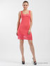 Стильное платье на лямках приталенного силуэта. Модель оформлена ажурной вставкой на груди и по низу изделия. Прекрасный летний вариант.