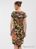 Платье приталенного покроя с короткими рукавами и округлым вырезом горловины. Изделие выполнено из принтованной ткани контрастной расцветки. Отличный вариант на каждый день.
