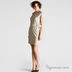 Прекрасное светлое летнее платье строгого силуэта. Вырез округлый, оформлен складками. Крой платья прямой, сзади выточки на талии. Платье дополнено ремешком с пряжкой. Короткий прямой рукав.