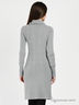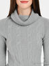 Комфортное платье из приятного на ощупь джерси. Воротник-хомут. Длинные прямые рукава. На полочке и спинке вертикальные объемно связанные косы. Воротник, манжеты рукавов дополнены вставками из кашкорсе. На подоле вставка из трикотажа в горизонтальный рубчик.