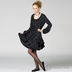Оригинальное платье с расклешенной юбкой. Глубокий круглый вырез горловины с оригинальной отделкой, длинный рукав присбореный у манжета, подол платья - волан, по поясу тонкий ремешок из основной ткани.