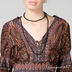Оригинальное платье с V-образным вырезом и длинным рукавом.