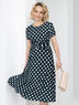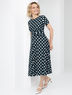 «Не волноваться, а волновать» © М. Монро. Что еще могла посоветовать королева мужских сердец? Принимаем к сведению: в изумительном миди-платье из трикотажа. Неизменное, как сама Мерилин! Белый горох на темном изумрудном фоне.