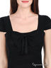 Детали: вырез горловины-каре, короткий рукав, лиф декорирован трикотажным бантом