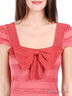 Детали: вырез горловины-каре, короткий рукав, лиф декорирован трикотажным бантом