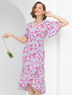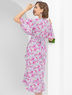 Берем пример с кинодив на красной дорожке. И показываем – можем лучше! В этом струящемся платье на запахе с оборками и рукавами-бабочкой. Потрясающие принты: на подложке цвета Фуксия нежные флористические мотивы.