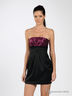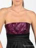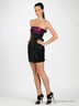 Приталенный силуэт. Отрезной лиф с вышивкой. Изнутри края лифа посажены на силиконовую полоску. Втачной пояс в складку с вшитым поясом, завязывающимся на спине. Платье застегивается на спинке на молнию и крючок. Завышенная талия и зауженная к низу юбка подчеркивают бедра. Атласная подкладка.