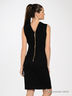 Круглая горловина. Отложной воротник. Без рукавов. На спине золотистая металлическая молния.