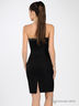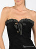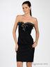 Приталенное черное платье без бретелек, идеально подчеркивает талию и грудь. Выполнено из плотного шелковистого материала.