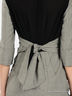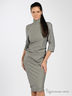 Воротник стойка. Рукава 3/4 с отворотами. На спинке вставка из прозрачного креп шифона в складку. Вшитый пояс завязывается сзади. Юбка карандаш.