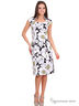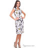 Приталенное весенне-летнее платье из гладкого материала. Круглый вырез, воротник-стойка, без рукавов. Оригинальный цветочный принт.