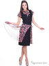 Весенне-летнее платье из гладкой ткани. Круглый вырез, короткие рукава-фонарики, воротник-лента. Нижняя часть и рукава украшены шелковистой тканью с оригинальным принтом.