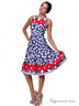 Яркое летнее платье расклешенного кроя. Вырез "каре", без рукавов. Оригинальный цветочный принт.