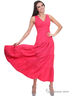 Расклешенное летнее платье из хлопчатобумажного фактурного материала. V-образный вырез с запахом, без рукавов, сзади застегивается на молнию.