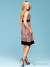 Детали: глубокий V-образный вырез; бретели, втачной пояс и низ изделия контрастного цвета; оригинальный принт