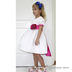Нарядное платье с широким атласным поясом и цветком. Круглый вырез, короткие рукава, сзади застегивается на пуговицы, юбочка в сеточку.