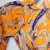 Яркое летнее платье расклешенного кроя. Выполнено из гладкого материала. Округлый вырез, широкие длинные рукава, талия присборена на резиночки. Оригинальный принт.