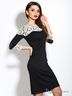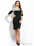 Роскошное платье, декорированное набивным кружевом в виде волны, плавно переходящим на рукава. Эффектные манжеты контрастного цвета, длина рукава 3/4. При изготовлении платья была использована ручная работа.