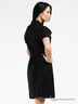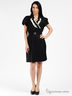 Великолепное платье приталенного силуэта из тонкой костюмной ткани. V-образный вырез с запахом, отложной ворот, короткий рукав, застежка на молнию сбоку, сзади шлица. Полочка декорирована оригинальным жабо с контрастным кружевом, в шлевки продет тонкий ремешок. Отличный вариант для создания повседневного образа.