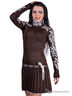 Платье приталенного силуэта длиной выше колена, украшенное складками и двойной завязкой на шлевках. Изделие с длинным рукавом и высоким двойным воротником. Воротник и рукавная манжета выполнены вязкой-резинкой. Замечательный выбор для стильных девушек.