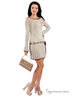 Платье приталенного силуэта длиной выше колена, украшенное складками, ажурной вязкой и двойной завязкой на шлевках. На лифе — декоративная молния. Изделие с длинным рукавом-регланом и горловиной-лодочкой. Рукавная манжета выполнена вязкой-резинкой. Замечательный выбор для стильных девушек.