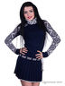 Платье приталенного силуэта длиной выше колена, украшенное контрастным орнаментом и кулиской. Изделие с длинным рукавом на ребристой манжете и теплым воротником-стойкой. Шикарный вариант для повседневного очаровательного образа.