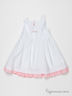 Модное платье из легкого батиста с застежкой на молнию на спине. Округлый вырез горловины. Полочка декорирована защипами. Низ изделия декорирован оборкой.