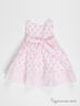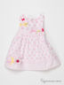 Красивое платье из хлопкового материала с застежкой на молнию на спине. Округлый вырез горловины. Узкий втачной поясок, плечо и подол декорированы текстильными цветками и бантиками. Отрезная юбка дополнена бантовыми складками.