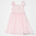 Красивое и нарядное платье с застежкой на молнию на спине. Короткие рукава-фонарики присборены на тонкие резинки. Полочка декорирована пробивной вышивкой, талия подчеркнута кружевом. Юбка дополнена гипюровой сетчатой тканью с отделкой из атласной ленты.