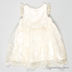 Красивое и нарядное платье из атласа с органзовой поверхностью с застежкой на пуговицы на спине. Короткие рукава-крылышки с декоративной вышивкой. Узкий втачной атласный поясок декорирован текстильным цветком с атласной лентой. Низ изделия декорирован вышивкой. Хлопковая подкладка.