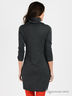 Детали: широкий ворот-гольф в крупный рубчик, длинный прямой рукав с подворотом на декоративной пуговице, полочка декорирована мелкими складками