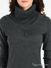 Детали: широкий ворот-гольф в крупный рубчик, длинный прямой рукав с подворотом на декоративной пуговице, полочка декорирована мелкими складками